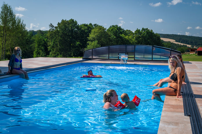 Venkovní bazén je při příznivém počasí na začátku června zpravidla již využitelný, vždy však záleží na aktuálních klimatických podmínkách. Vybrané wellness prvky je možné po předchozí domluvě využít i v rámci škol v přírodě, obvykle v menších skupinách a v odpoledních či večerních blocích, dle provozních možností.